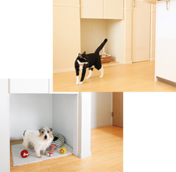 ペットがゆったりくつろぐことができて、飼い主さんも快適に過ごせるお部屋をご提供しています。ペット可では気になってしまうお部屋の傷みやニオイにも配慮し、お手入れしやすい専用設備です。