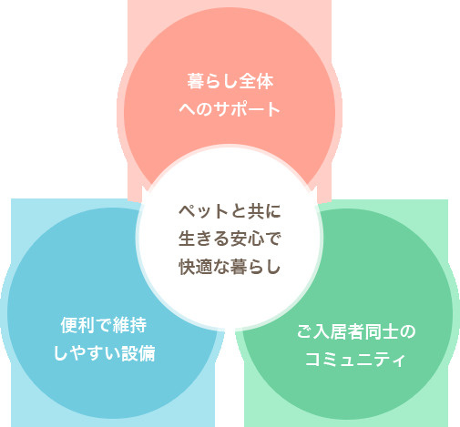 基本滝なマナーやしつけ老後のケアなどを身につけるためのサポートとして、ペット相談会を物件ごとに開催しています。コミュニティの形成のサポートとしてもお役に立てていただいてます。